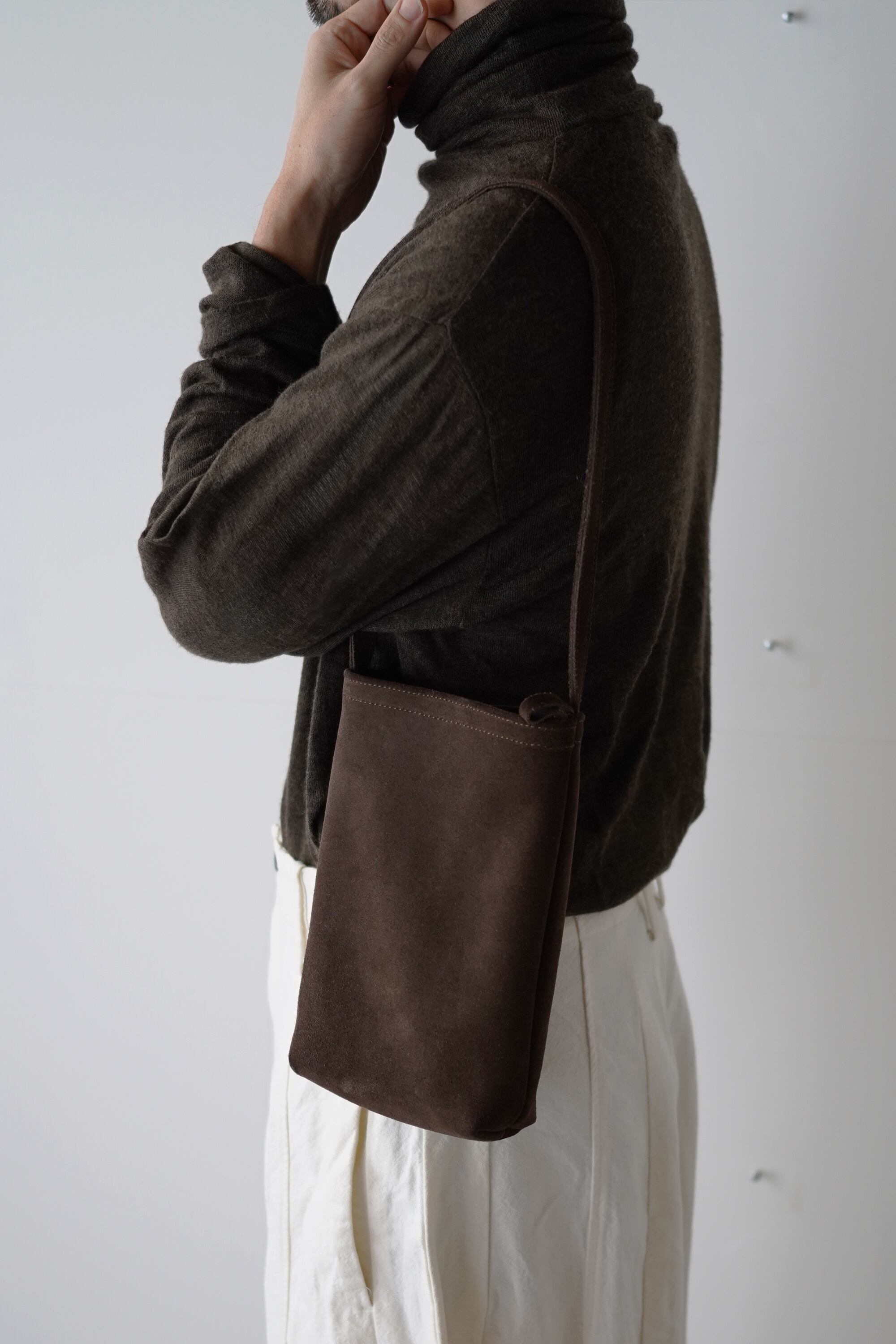 受注生産 [ MOLVAR ] SUEDE MINI TOTE BAG / BEAR / 牛スエードミニトートバッグ 本革 イタリアンレザー 縦長 ダークブラウン