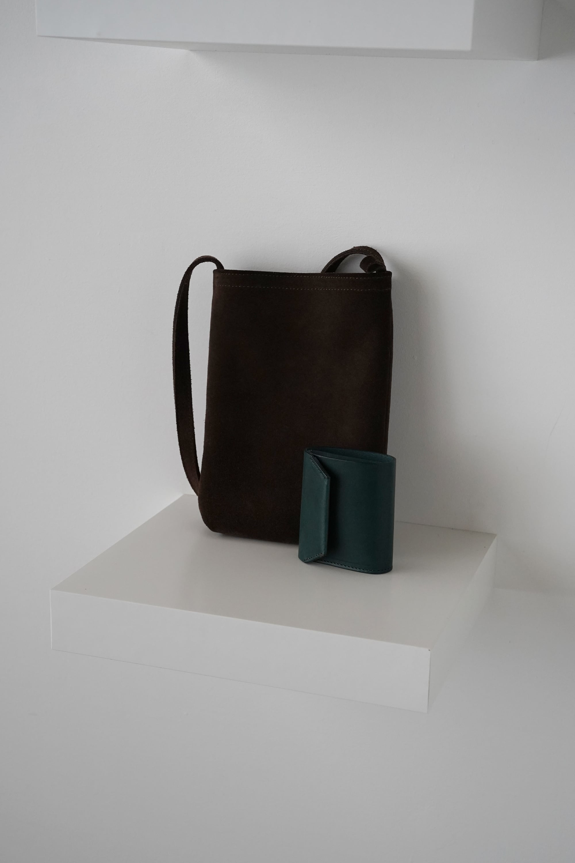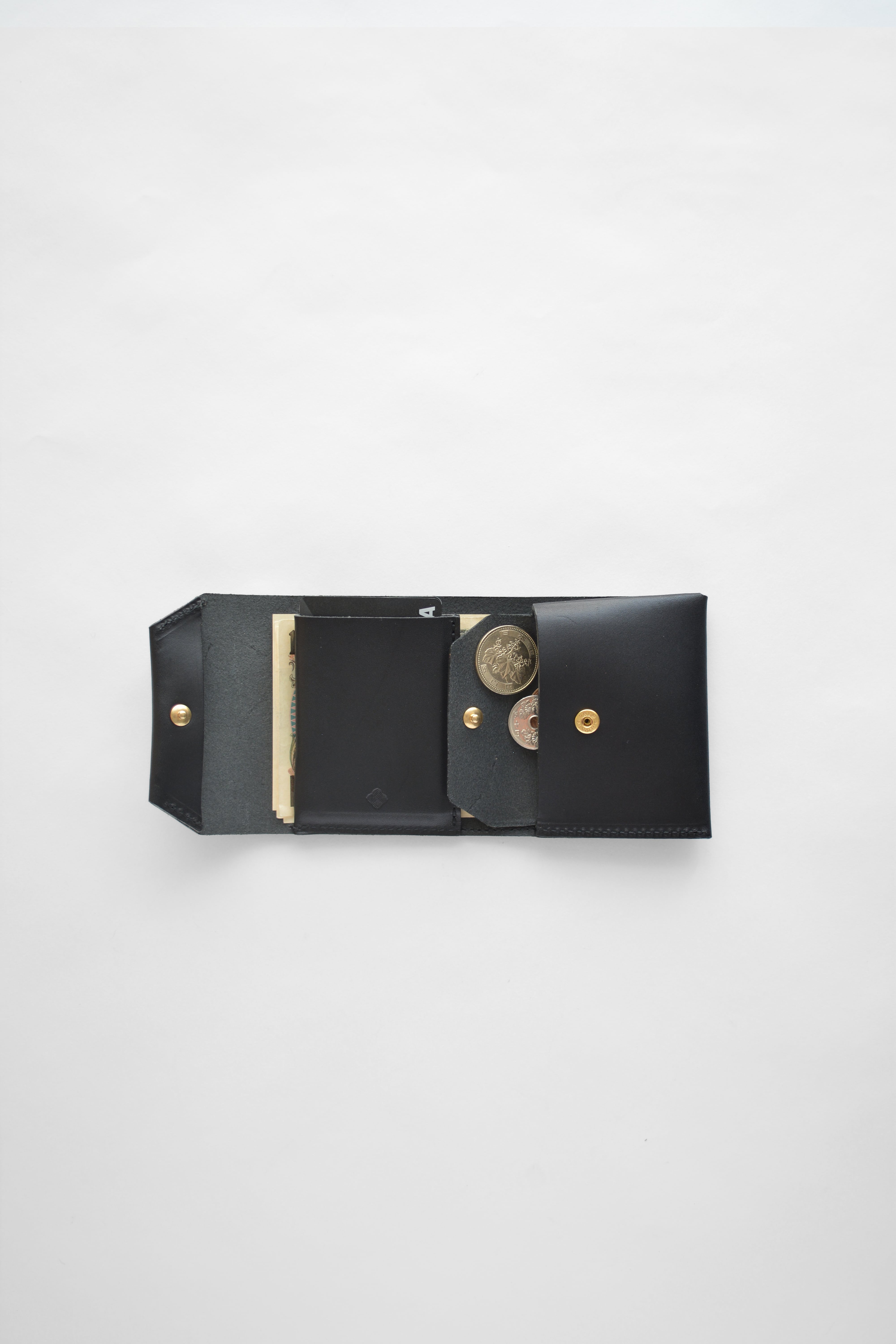 2枚の革を折りたたむようにして仕立てたシンプルな三つ折りコンパクトウォレット。