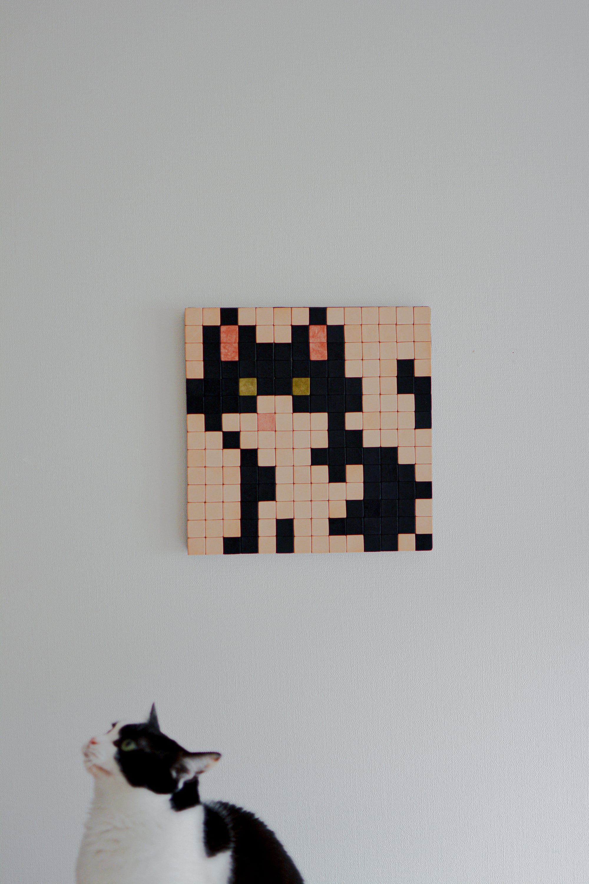 [ 革所 ] LEATHER PIXEL ART PANEL / 「HACHIWARE NEKO」