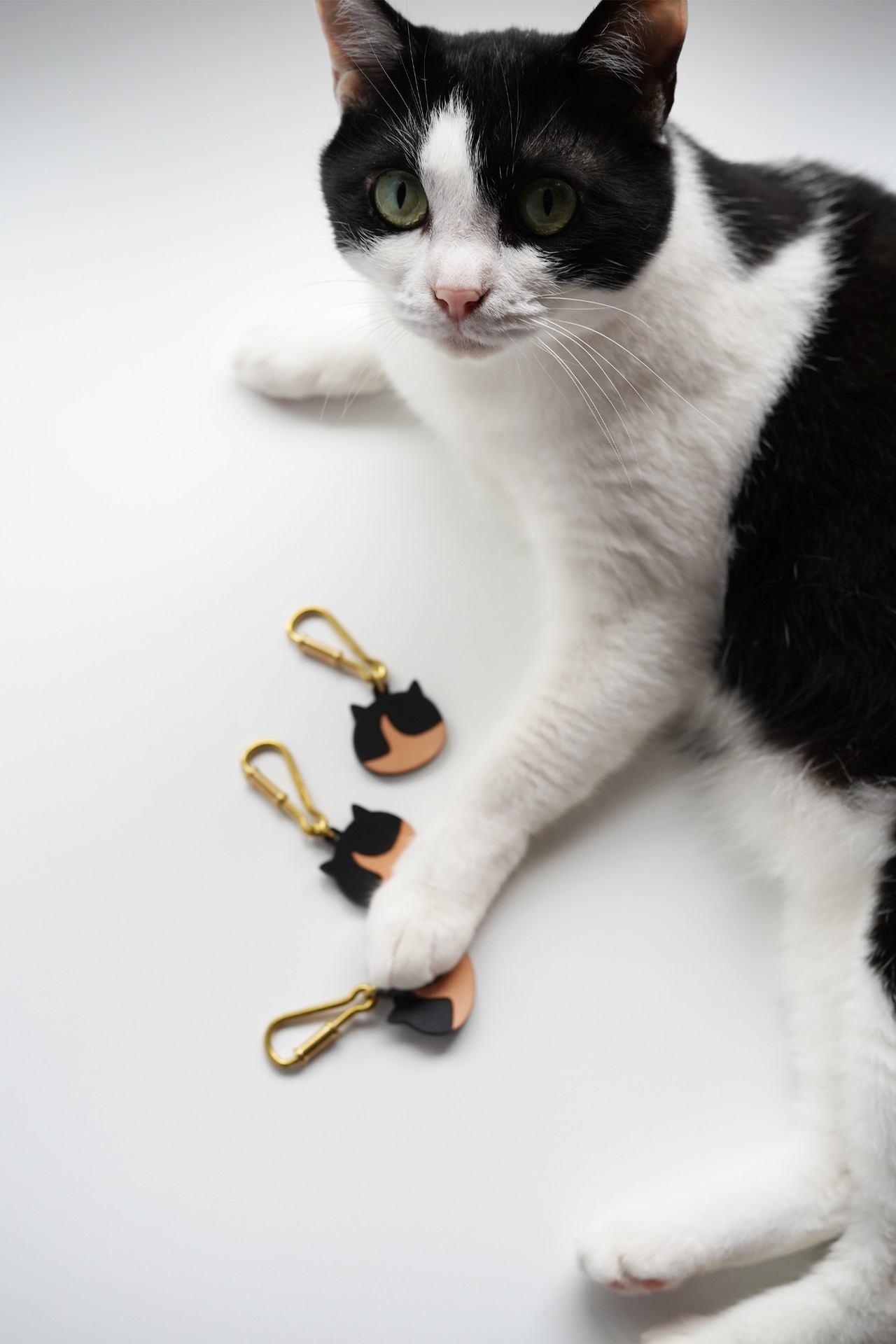 [ 猫所 ] HACHIWARE NEKO KEYHOLDER / はちわれねこレザーキーホルダー 真鍮カラビナ付き