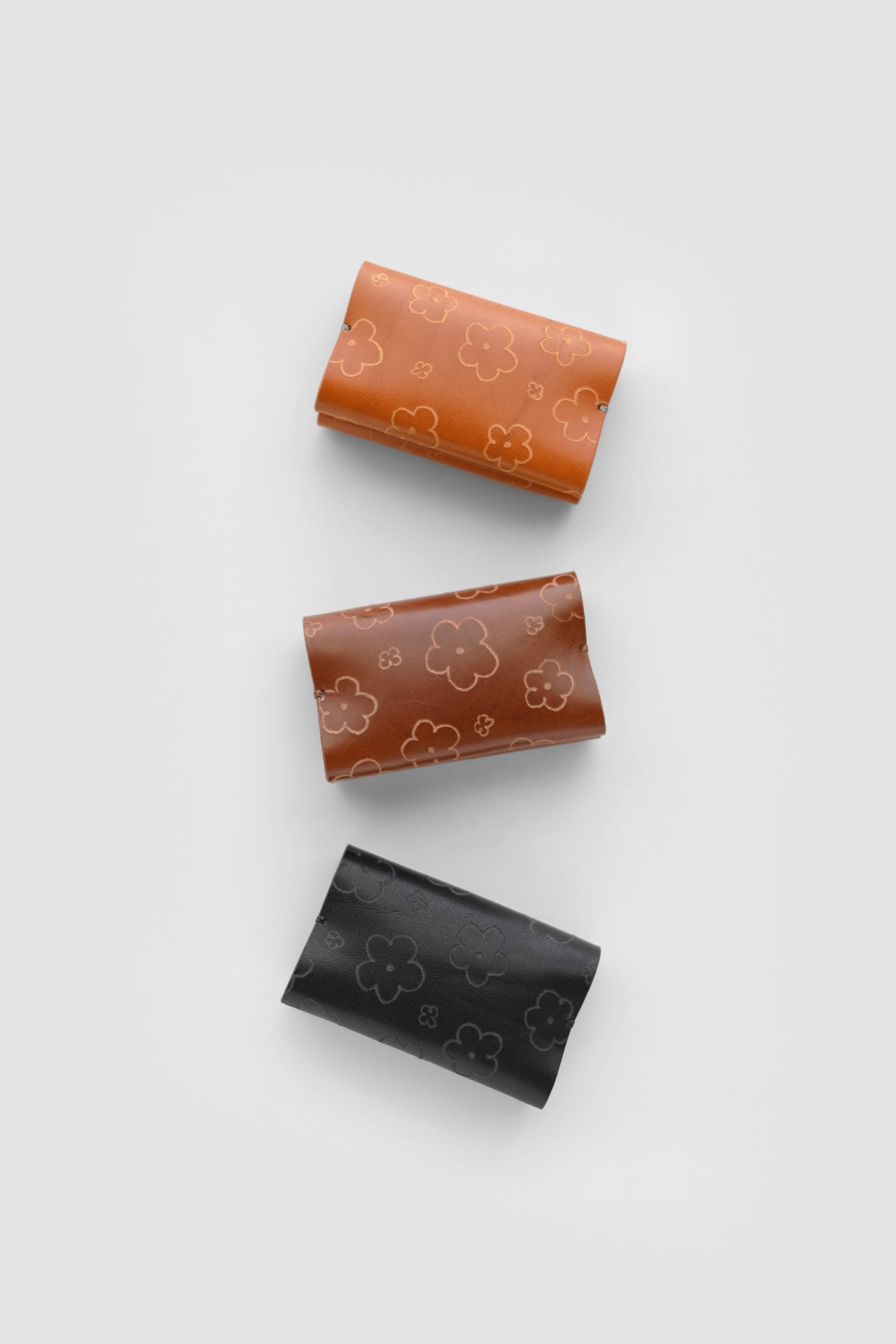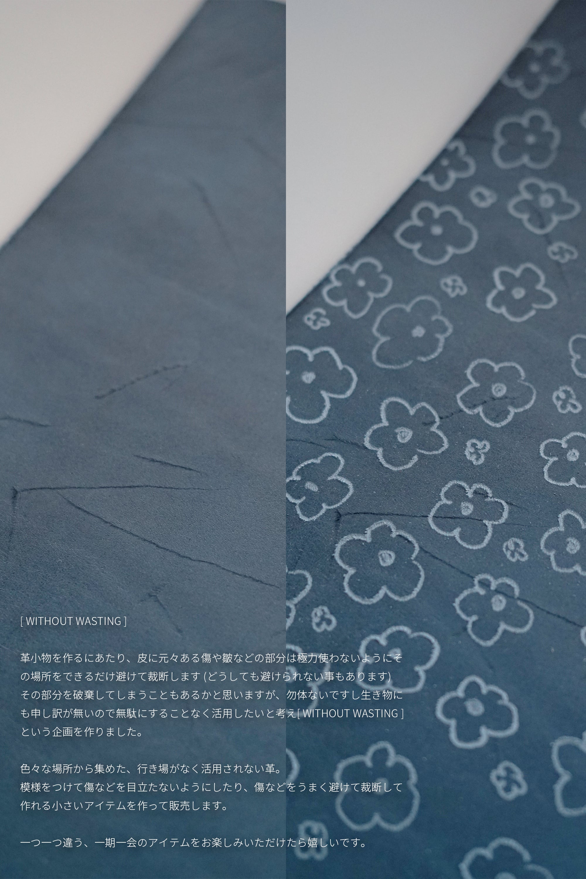 傷を目立たなくするために模様をつけたり、傷をうまく避けて裁断することで、小さな革小物へと生まれ変わらせています。